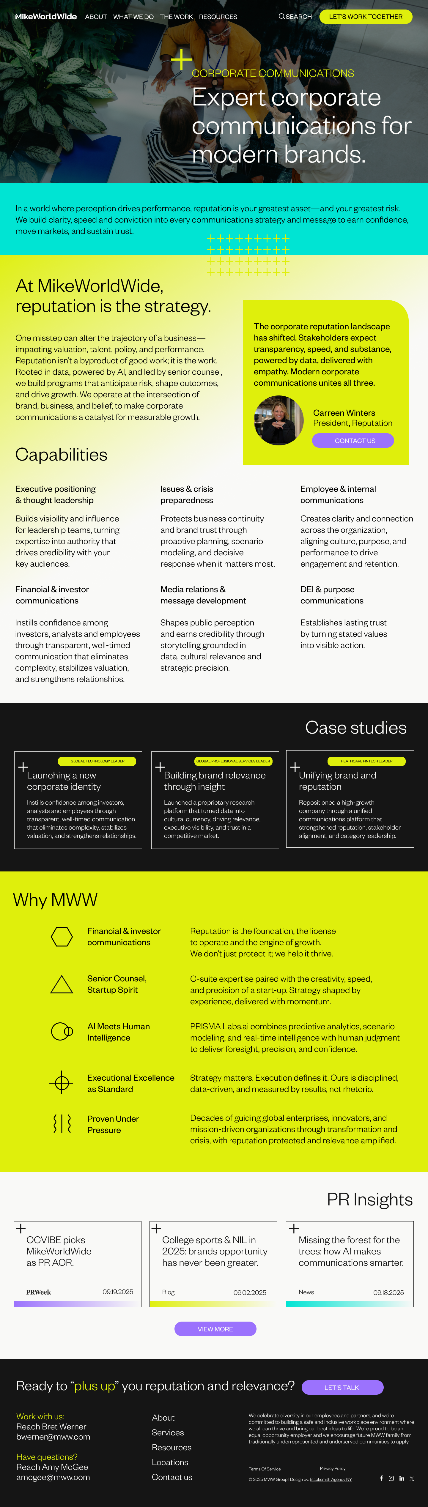 I led the redesign of MWW's brand identity — from developing the initial concepts to presenting and aligning with key stakeholders across the company. The result is a versatile, modular design system flexible enough to serve a wide variety of assets and audiences. The system extends across two sister brands, giving the entire family a cohesive, updated look while letting each retain its own voice.